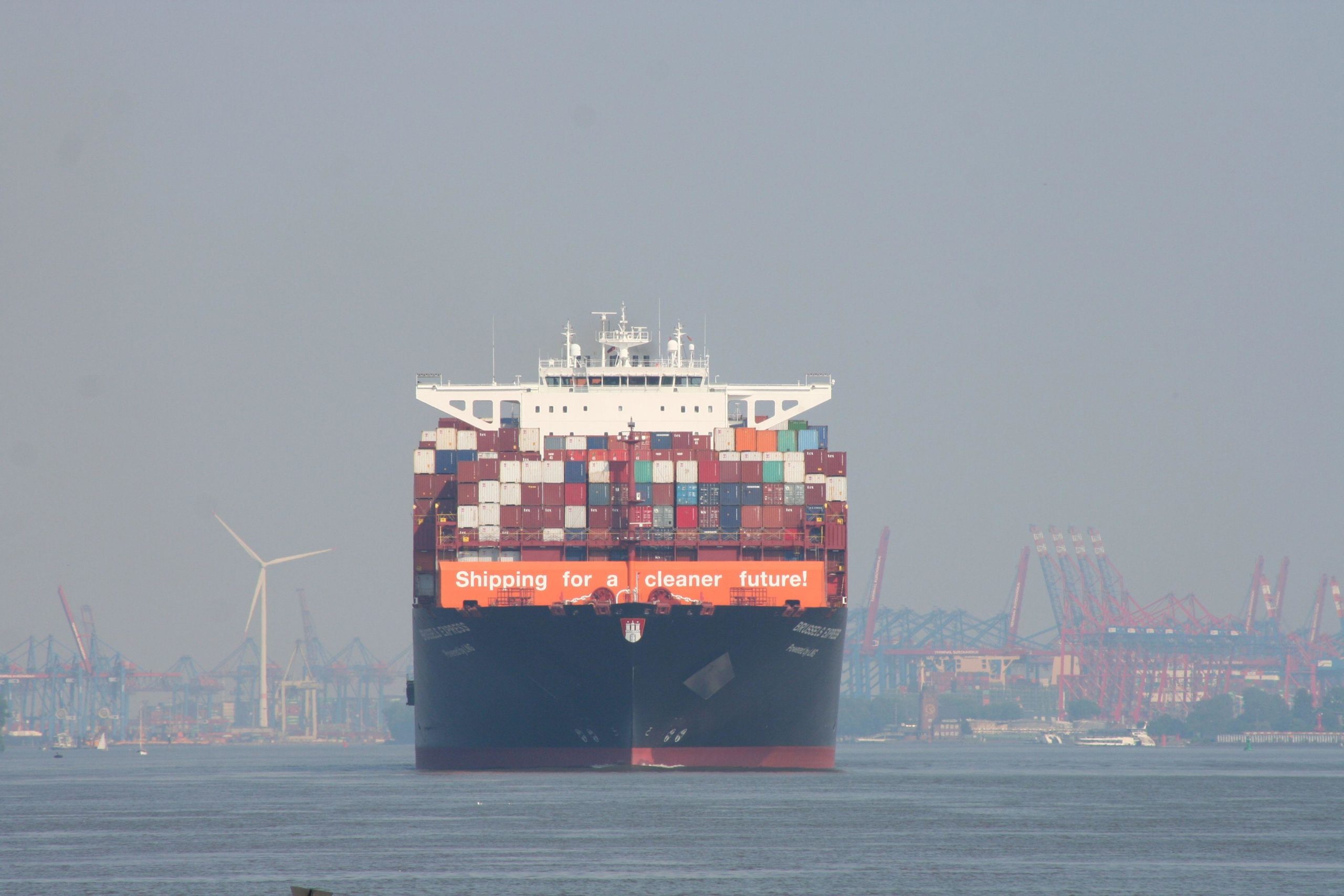 The first voyage of Hapag-Lloyd AG’s BRUSSELS EXPRESS (IMO 9708784), after it was converted in China into the world’s first large container ship with LNG propulsion, was to Hamburg.