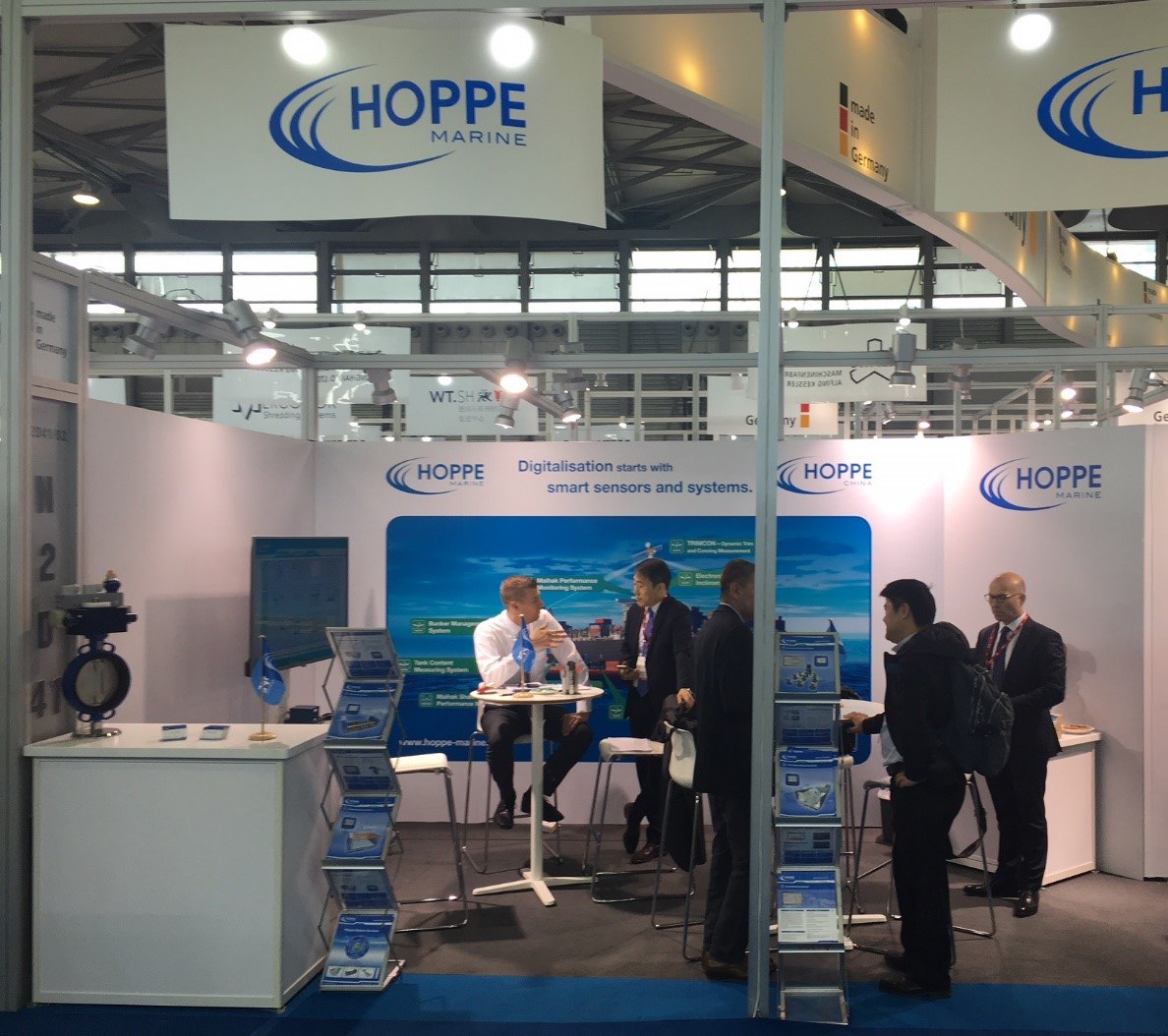 The most addressed topics were the HOPPE Marine Tank Content Measuring System which continuously monitors the contents and temperatures of ballast, cargo, fuel oil, and other liquid tanks, our Valve Remote Control System, designed for remote control of pneumatic, hydraulic or electro-hydraulic operated valves and our newly developed Electronic Inclinometer which displays actual roll and pitch data in real time according to IMO res. MSC.363(92).