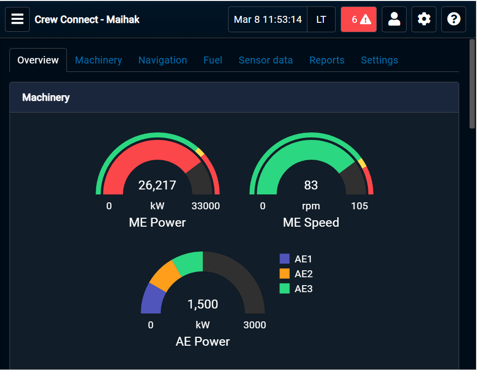 - Report generation with operational KPIs including nautical and machinery data